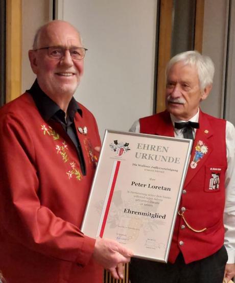 In Anerkennung der während vielen Jahren geleisteten Dienste ernennt die Walliser Jodlervereinigung Peter Loretan zu seinem Ehrenmitglied.